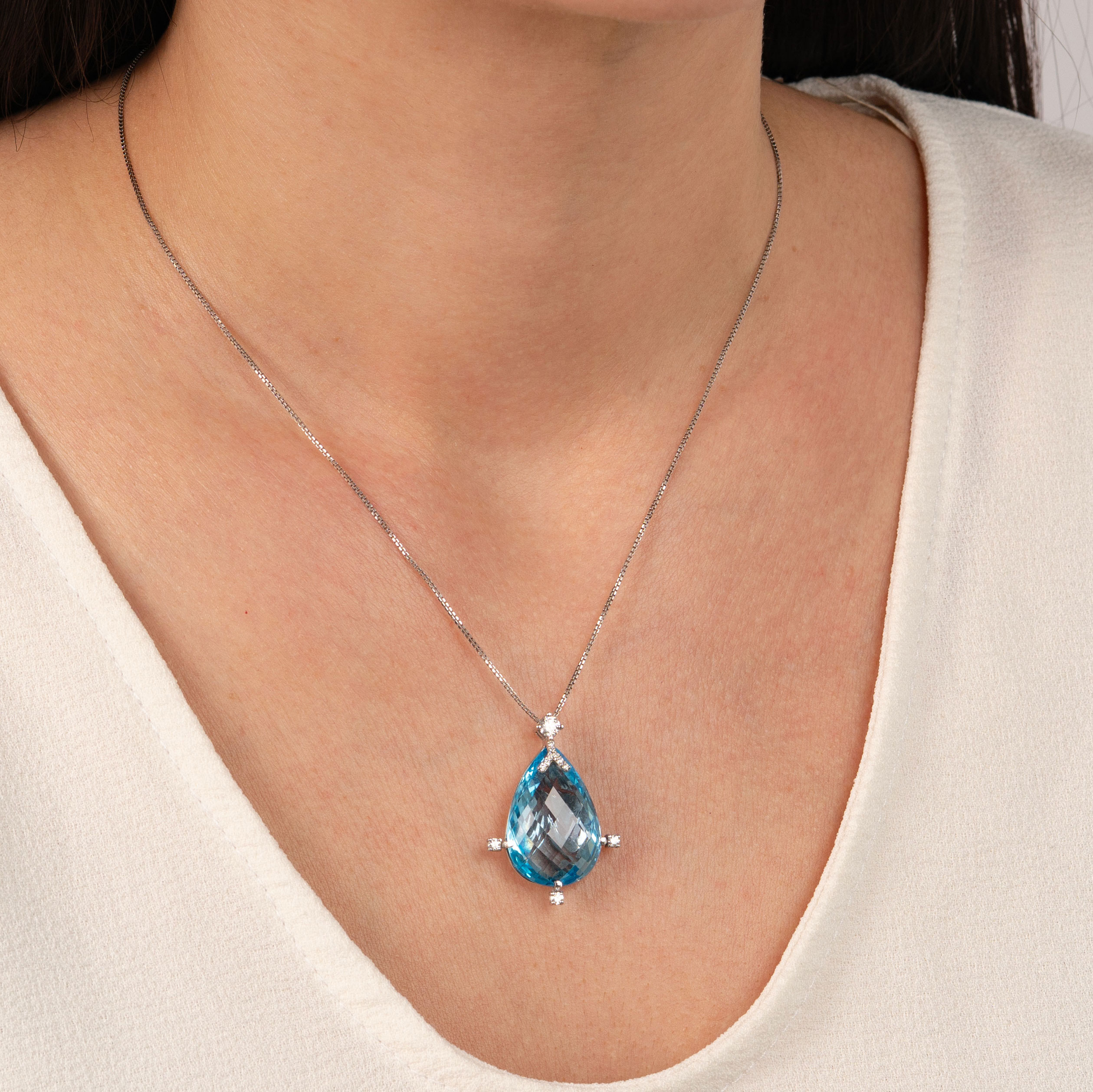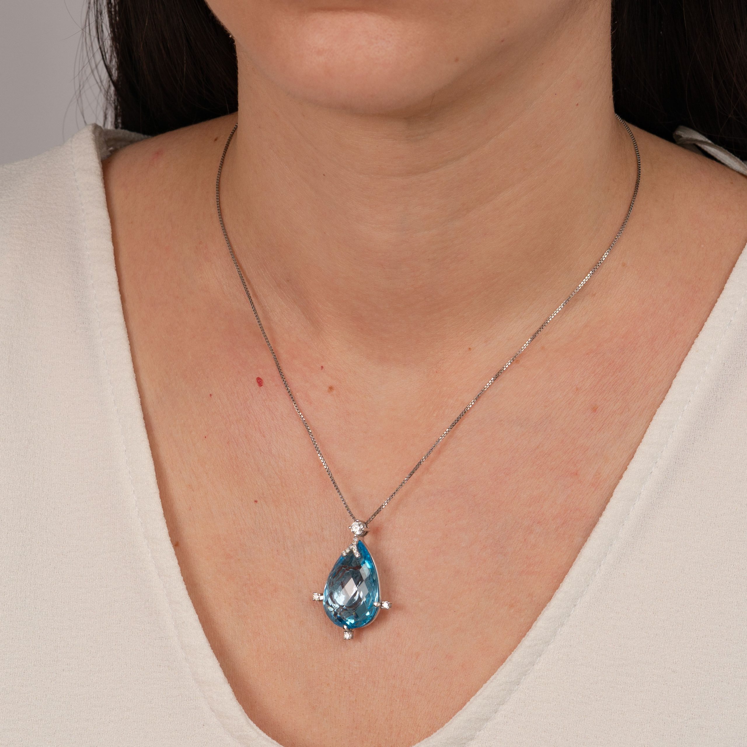 18-karat white gold pendant with blue topaz and diamonds