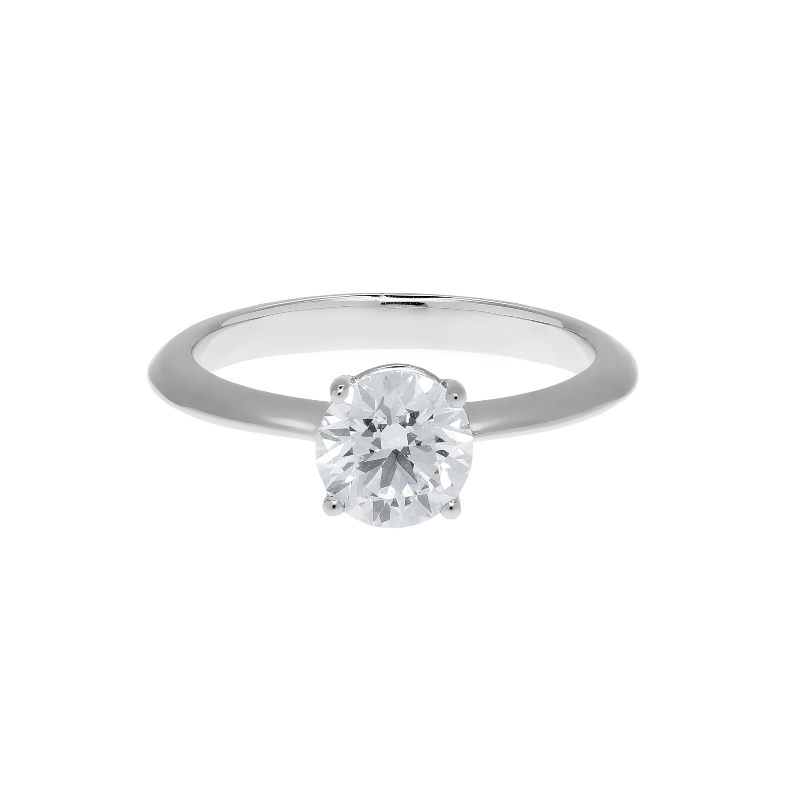 Η επιτομή της διαχρονικής κομψότητας. Ένα εντυπωσιακό μονόπετρο δαχτυλίδι κατασκευασμένο από λευκό χρυσό 18 καρατίων, που φιλοξενεί ένα μεγαλοπρεπές διαμάντι 1 καρατίου (1.00 ct).